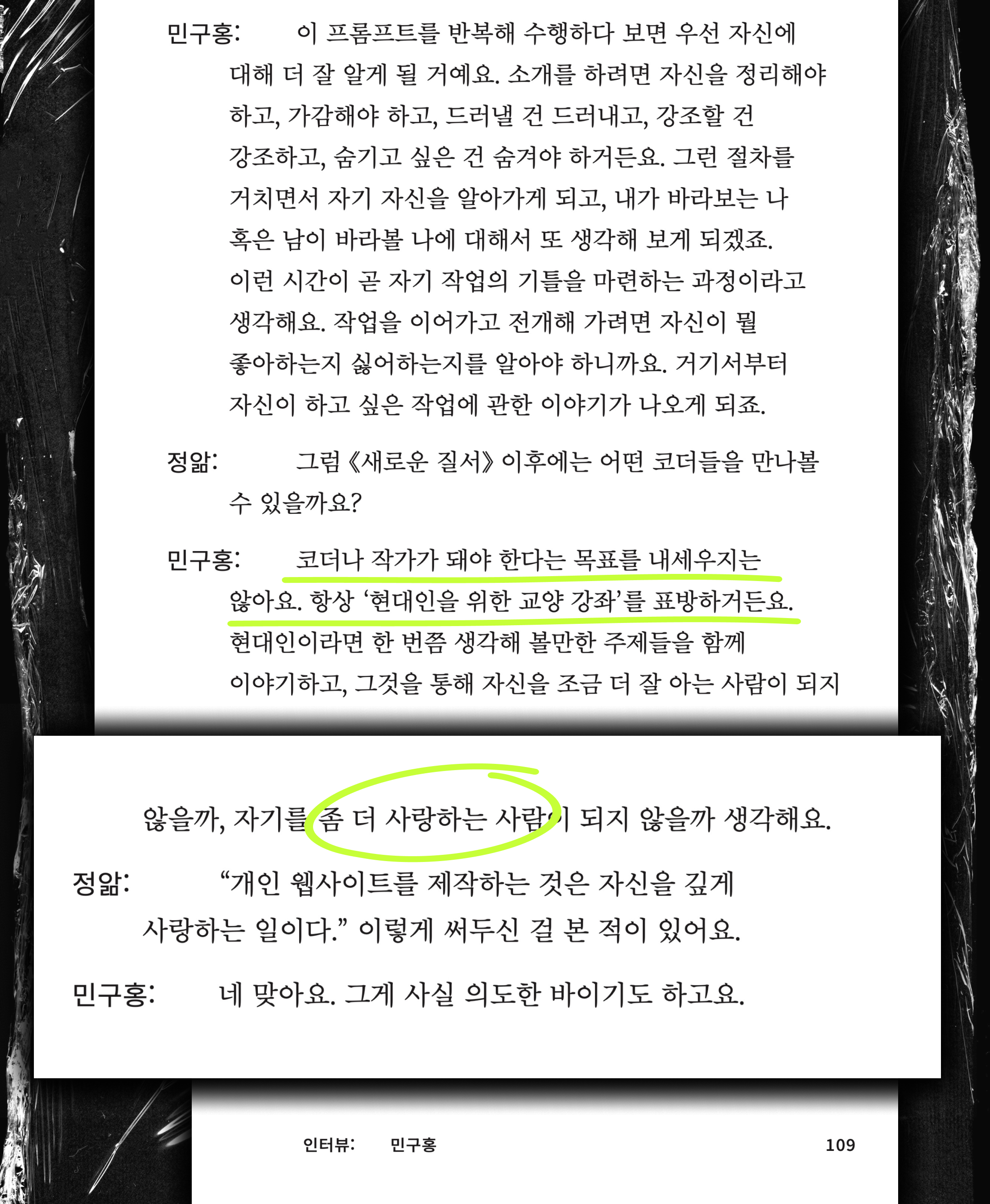 3개 에세이와 인터뷰 샘플입니다.