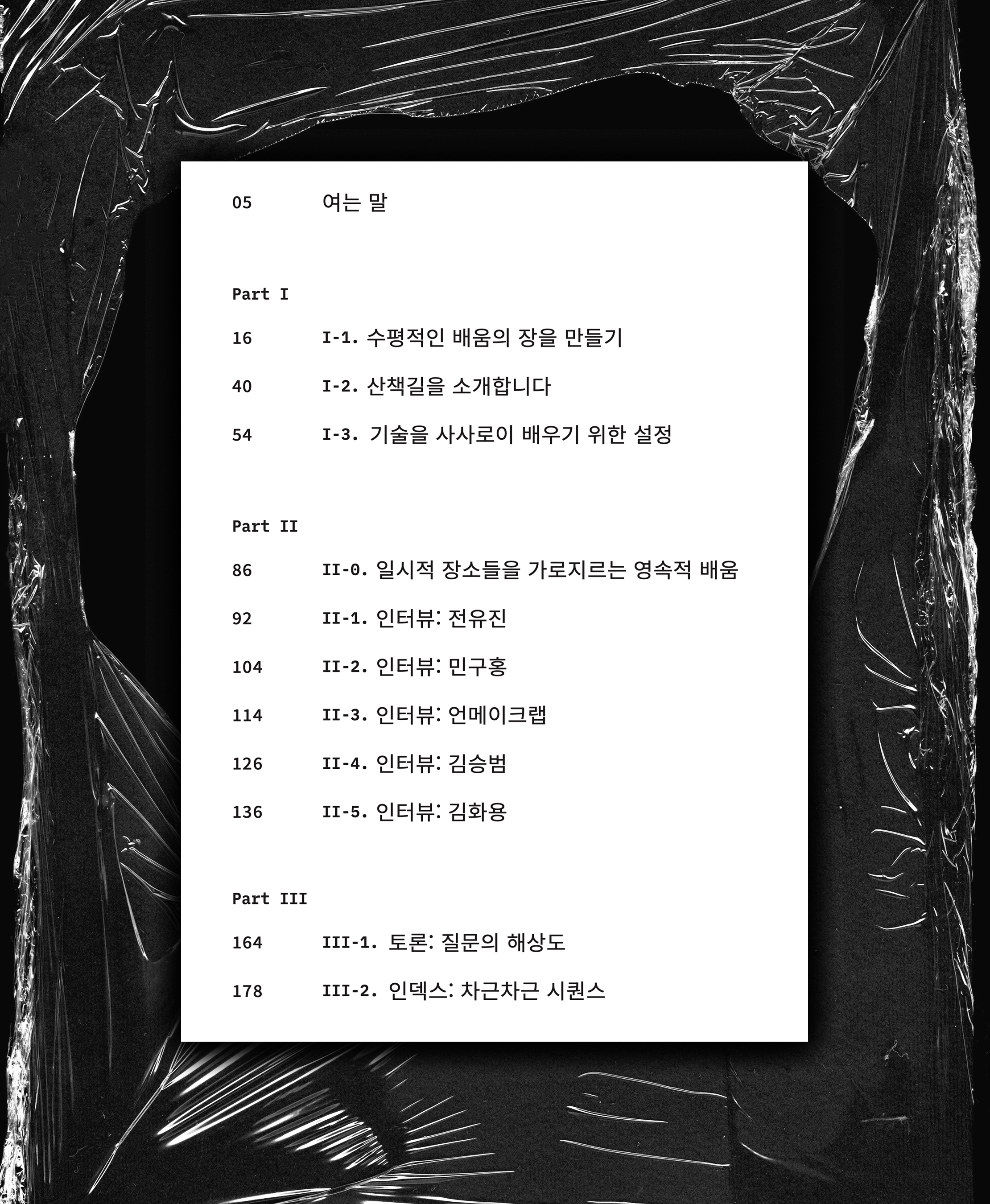 <스쿨링: 사사로이 배우는 기술>은 전유진 작가와 김승범 작가와 공저한 책으로 기술 교육에 대한 에세이와 인터뷰 및 행사 기록들을 담아 2025년에 출간했다. 아트북페어 언리미티드 에디션 17에 <펨텍톡> 부스로 참여했고, 또한 <우리들의 나머지 공부> 토크 및 참여형 워크숍을 통해 다양한 서울의 독자들을 만났다.